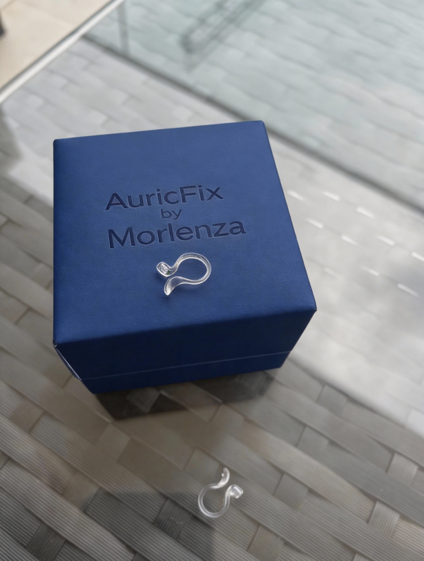 AuricFix es un pequeño clip auricular invisible que corrige al instante el ángulo de tus orejas — sin dolor, sin cicatrices y sin periodos de recuperación.